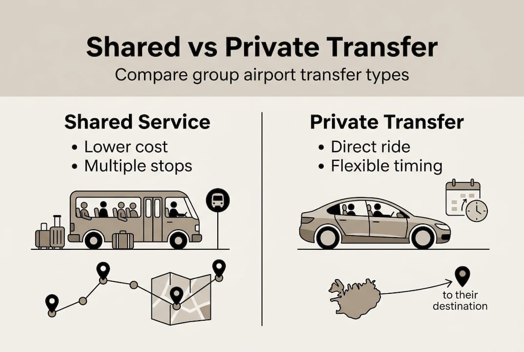 For a broader look at your options, the guide to Iceland airport transfer options covers every service type available in 2026. If you are coordinating a larger party, the group travel transfer guide walks through logistics for bigger groups in detail.