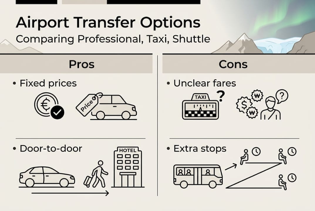 For international travelers unfamiliar with Iceland, these challenges multiply. Language barriers complicate fare negotiations. Currency conversion confusion makes it harder to spot overcharging. Professional transfers remove these variables entirely, letting you focus on enjoying your trip. Exploring airport transport alternatives helps you understand all available options before deciding.